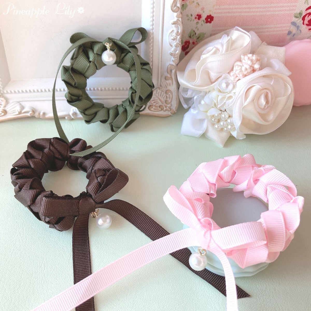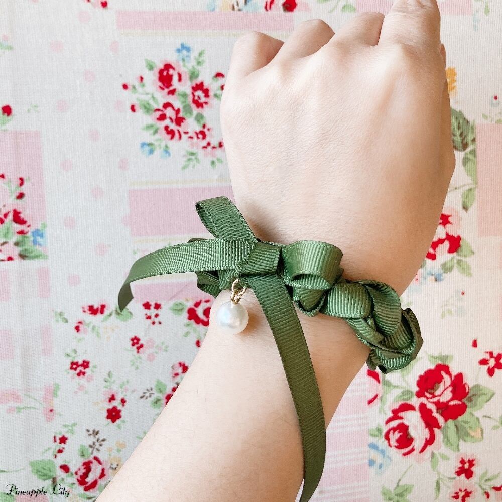 ※ヘアゴム(日本製)のカラーは茶・黒もしくはリボンに合ったカラーがランダムで入ります