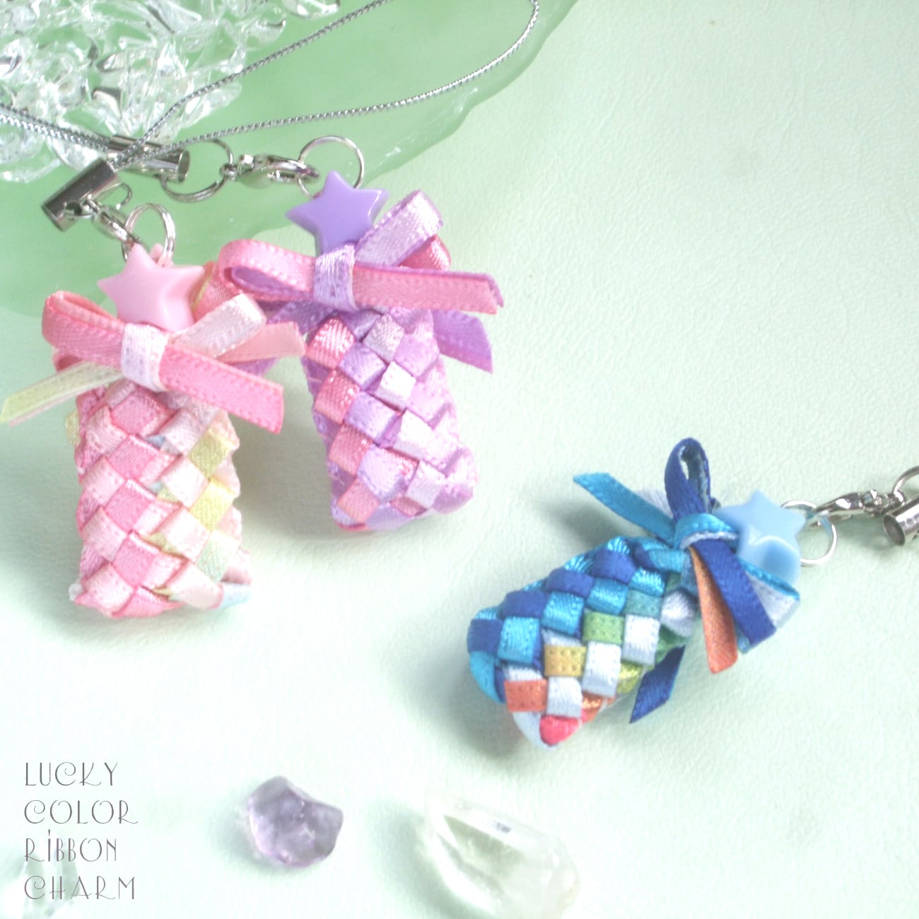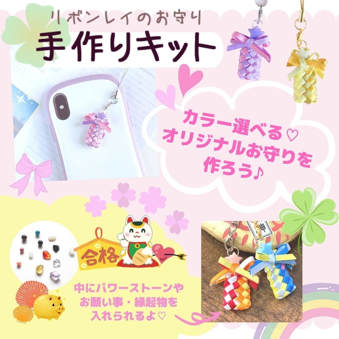 ꕤ リボンで作る小さな『お守りストラップ』が完成する「材料+作り方」をお届けするキットです♪