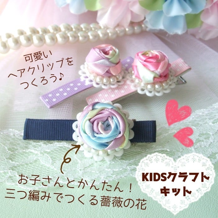 三つ編みレッスンとヘアクリップづくりが親子で一緒に楽しめる材料付きのキットです♪