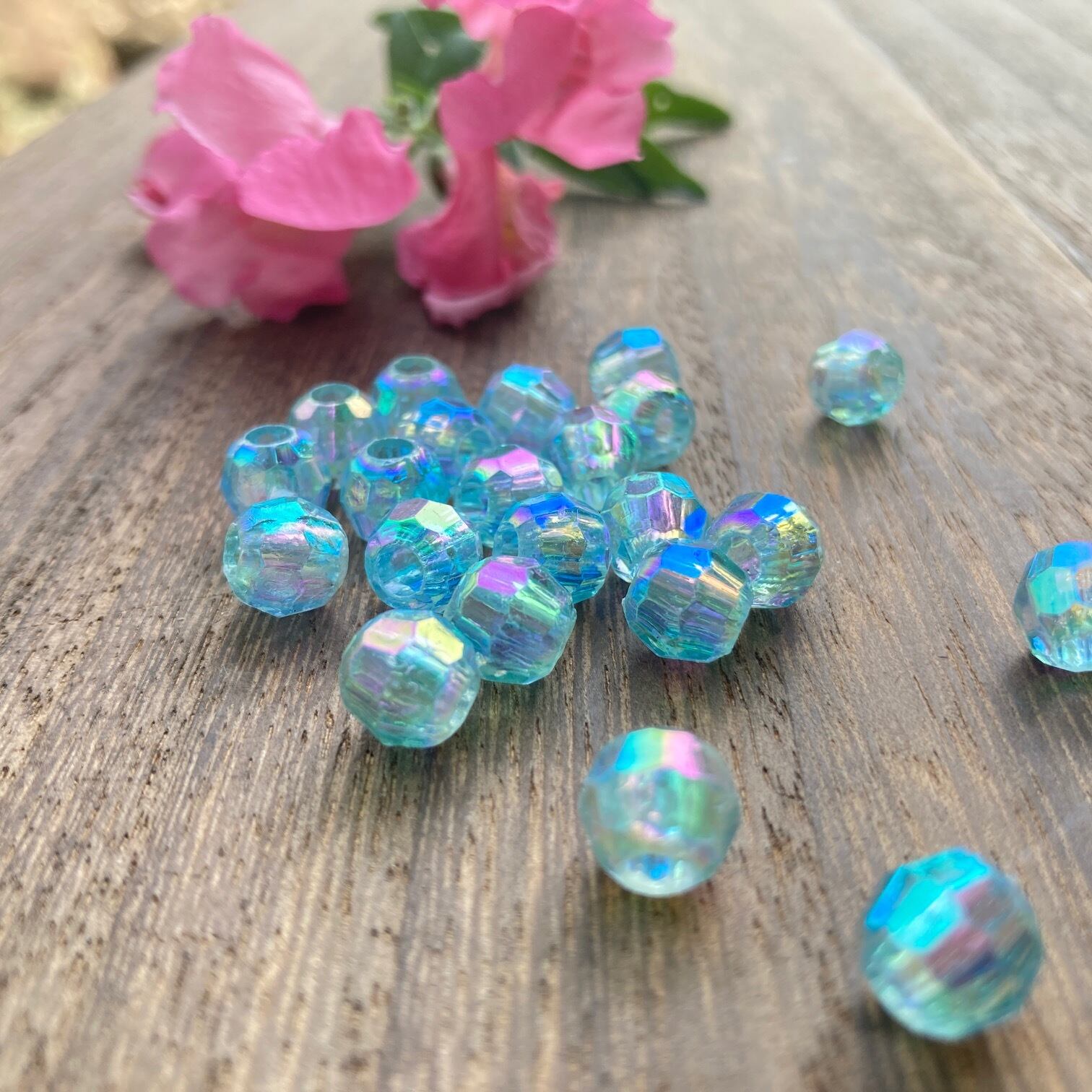 面カットが施されているため、見る方向によってキラキラと光を反射し作品に輝きを添えてくれるビーズ。大きめの穴のプラビーズってなかなかありませんが、こちらは穴までしっかりと作られたメーカーのビーズです。